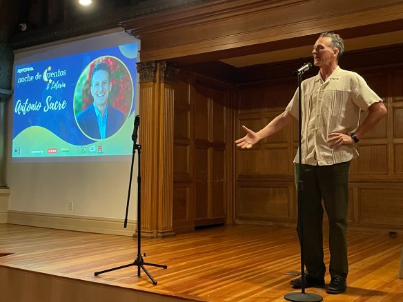 Master storyteller Lucia M. Gonzalez was the Mistress of Ceremonies, first introducing Irania Macias who opened the night with interactive stories and music. One of her stories paid tribute to storyteller Antonio Sacre, who followed her act with his own stories full of nostalgia and humor. Closing the night, Yosimar Reyes recited his own poems, in which he shared the humanity of shared experiences.